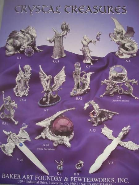 Baker Art Foundry produced a fantasy line of pewter gift items in the 80's that is still popular today. We have had wizards since Merlin!! Mermaids have graced our collectibles before "the little mermaid", and our fairies have flown around our foundry for four decades now.