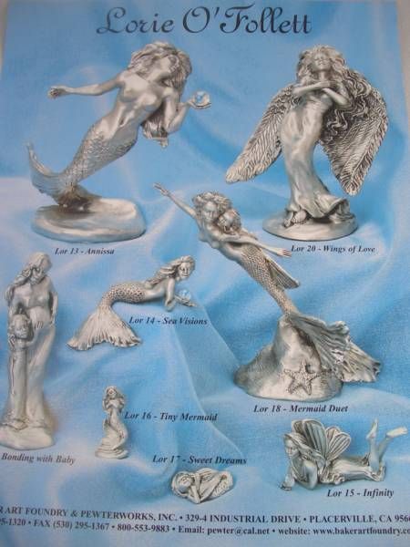 Baker Art Foundry has been casting mermaids & faeries in pewter since the early 70's. Although many things change and our designs have changed we still have hundreds of molds of these lovely creatures to choose from. We also are adding more mermaids and faeries to our lines. If you have a design that you would like to have cast in pewter just conact our foundry.
